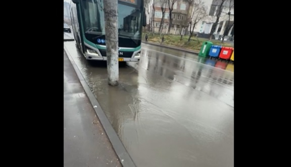 Остановка на улице Башинджахяна превратилась в озеро (видео)