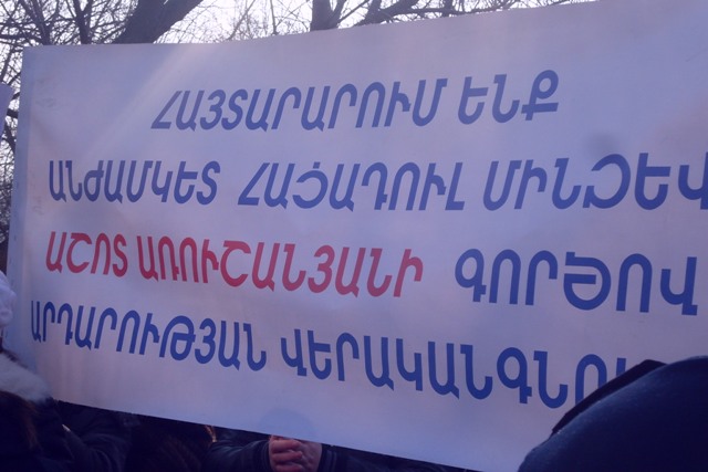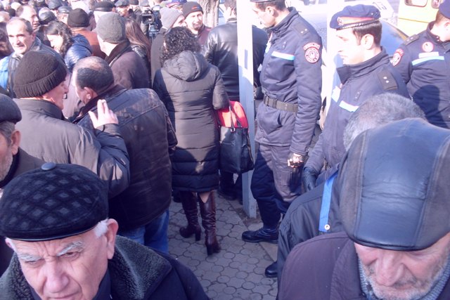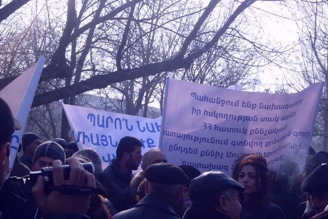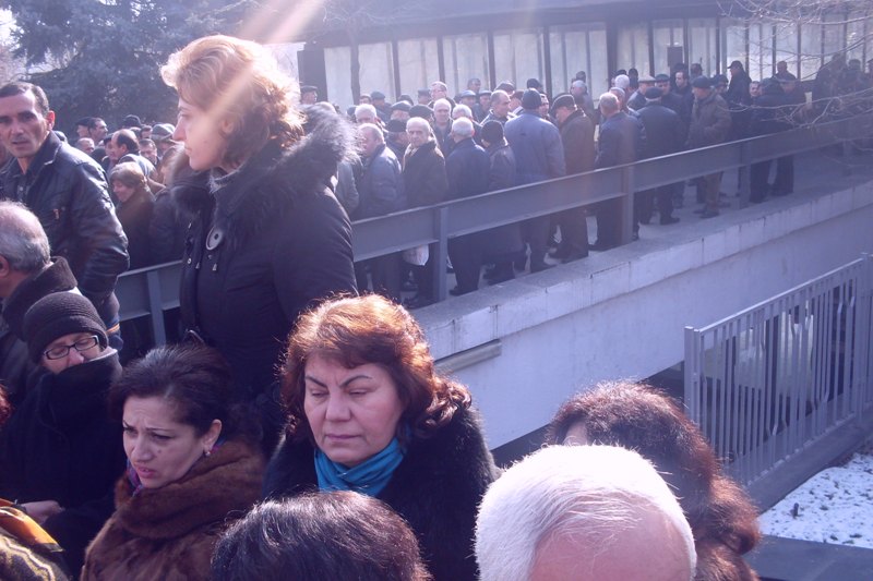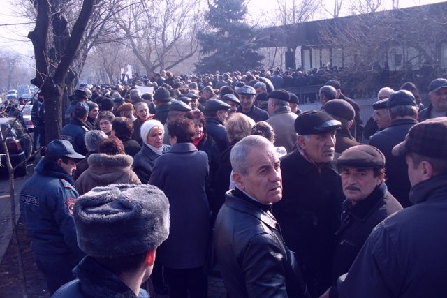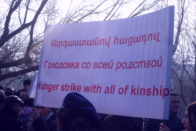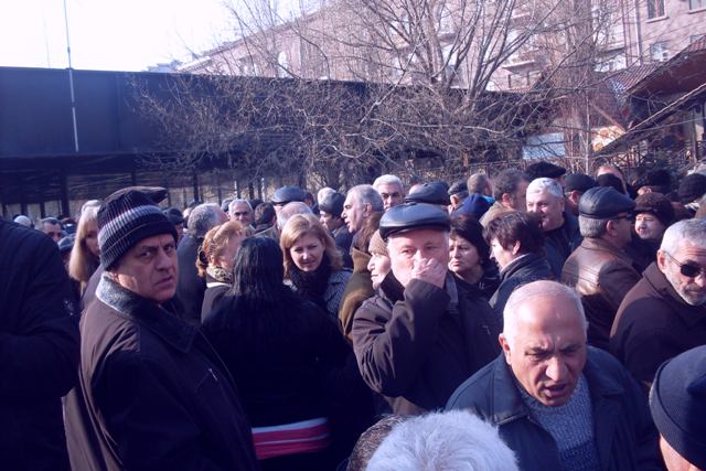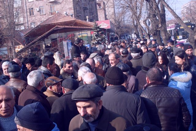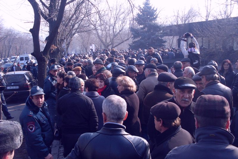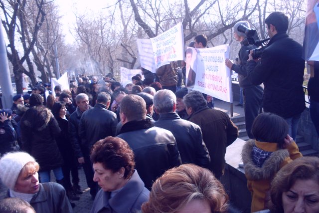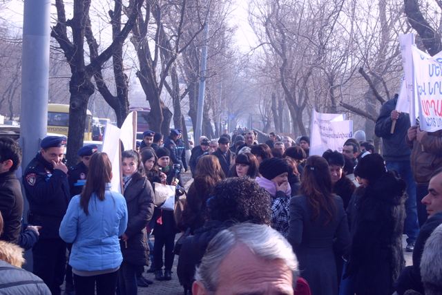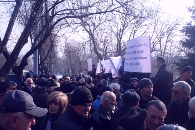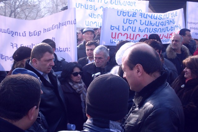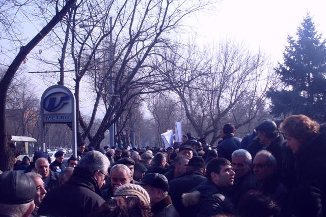 Работники завода «Наирит» провели перед зданием президентской резиденции акцию протеста с требованием выдать зарплаты и перезапустить производство завода.